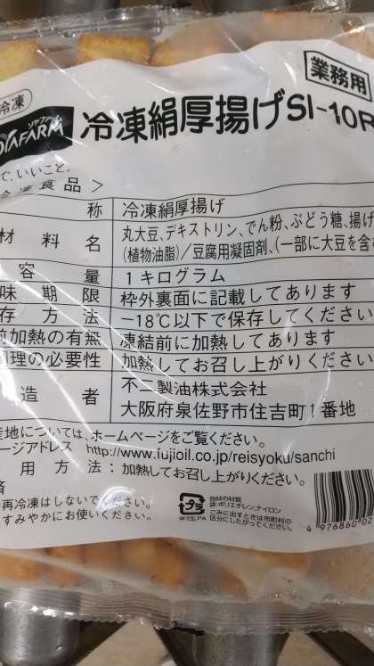 中華煮に使用の厚揚げです。凍らせた状態で配送されています。