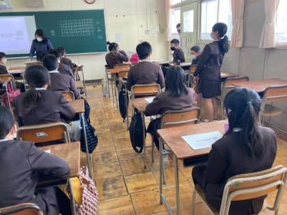 先日、六年生は東生野中学校で国語の授業を受けに行きました。