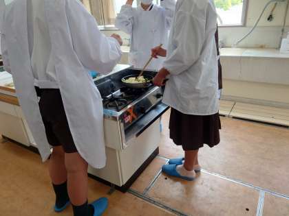 1組が調理実習を行いました。明日は、2組の予定です。
