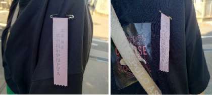 ○事前に配布している「ピンクリボン」を左肩か左胸につけてください。