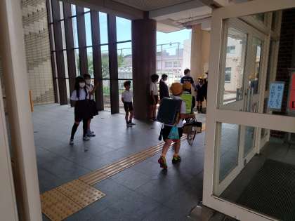 6月1日〜14日は「あいさつ運動」の期間です。たてわり班ごとにピロティや保健室前廊下に立ち、登校時のあいさつを行います。元気で気持ちの良いあいさつであふれていました。