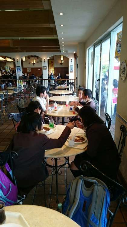 スペイン村パルケでは、パレードを見たり、グループでご飯を食べたり、のんびり楽しく過ごしています。すいているので自分たちの天下です〜!