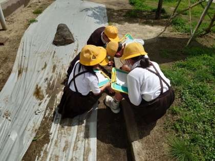 校内で春の生き物を探して観察しました。3年生から始まった理科の学習に意欲的に取り組んでいます。