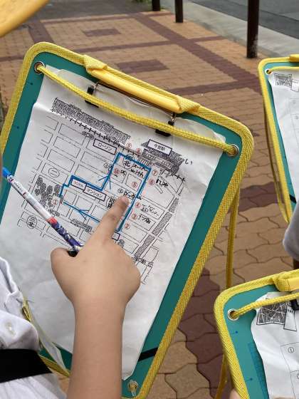 地図を片手に、班ごとに協力し合って行動。