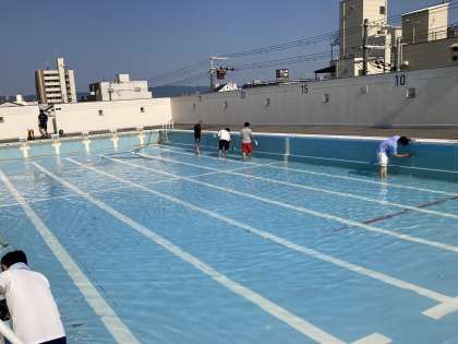 来週はプール開きです。午前中は管理作業員、放課後は教員でプール清掃を行いました。