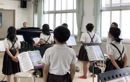 リコーダーは「富士山」、歌は「まきばの朝」を練習しています。
