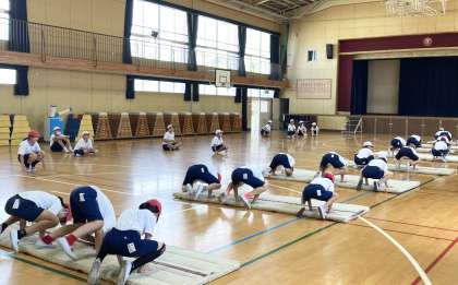マット運動の学習をしています。