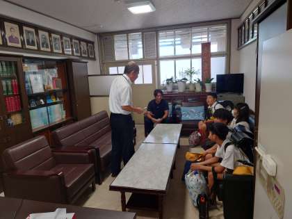 キャンプファイヤー係が校長先生と打ち合わせをしています。