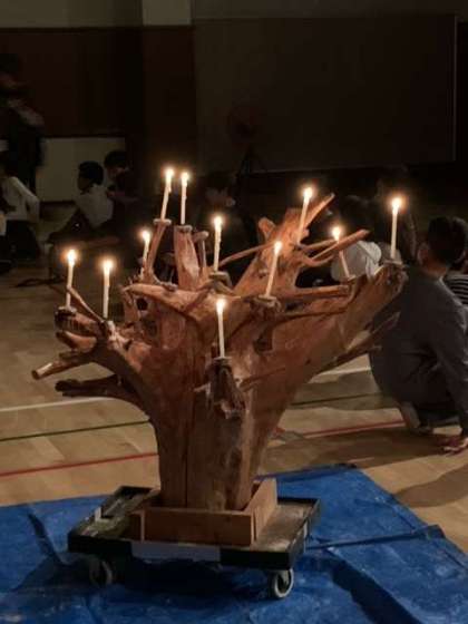 あいにくの雨天により、キャンプファイヤーがキャンドルファイヤーになりました。