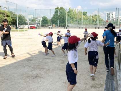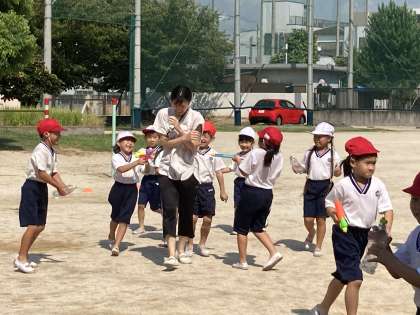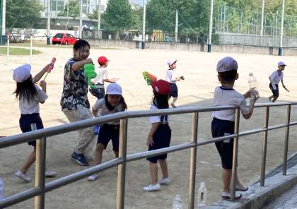 お水を満タンに貯めて、先生を追いかけたりお友達から逃げたり。