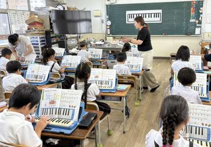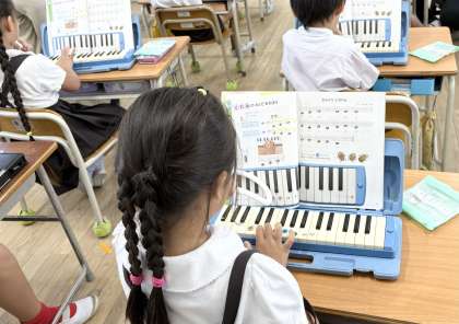 吹き方に気を付けながら、けんばんハーモニカの練習をしました。。