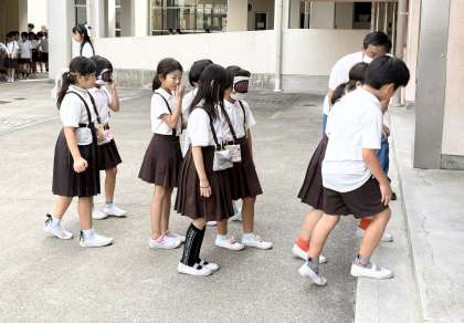 ペアの子の優しい声掛けで、安心して進んだり止まったりすることができているようでした。