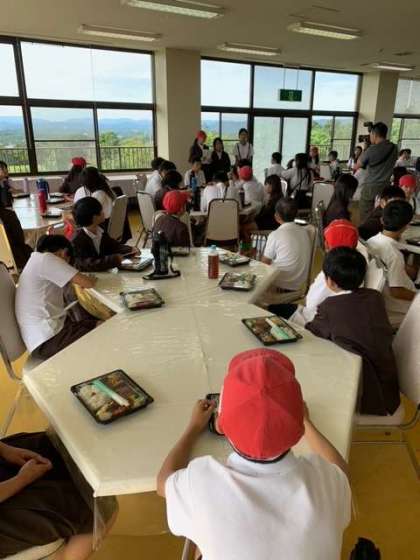最後のご飯。お弁当です。食べたら学校へ向かって出発します。