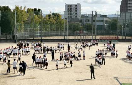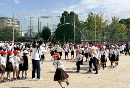 15分休みを使って、各学級が大なわにチャレンジしています。