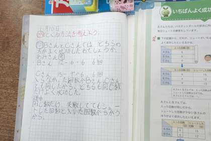 「割合」の学習をしています。今日は二つの数の比べ方について考えました。