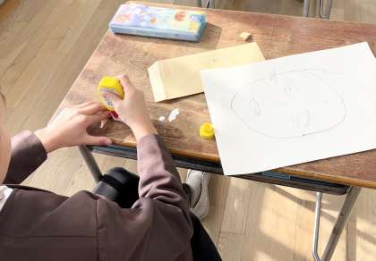 「耳の大きさはどれくらいかなあ」と考えながら、自分の顔のパーツを作っています。