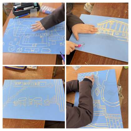 思い出が詰まった学校を切り取って、彫り進めています。