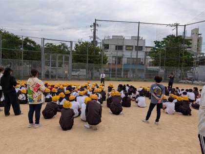 「お・は・し・も」に気をつけ、東中川グラウンドに避難しました。