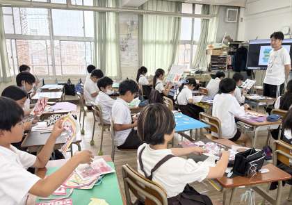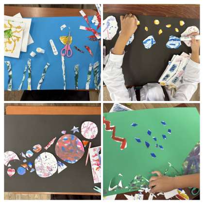 自分で決めたテーマになるよう、色画用紙に貼ったり描いたりしていきます。