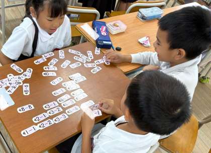 今日は計算カードを使って、ひき算のきまりを考えました。