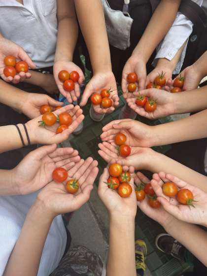 みんなで育てたミニトマトがこれだけ収穫できました。