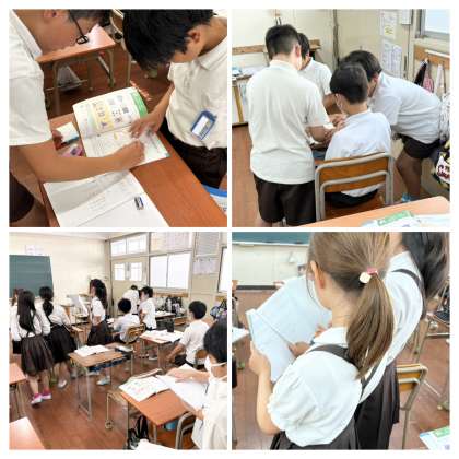 今日は「形も大きさも同じ図形の調べ方」をみんなで考え、意見を発表しました。