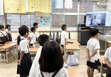 各クラスと校長室をチームズで繋ぎ、終業式を行いました。