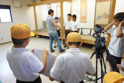 1つ目は音楽を教えてもらっている大畠先生へのインタビューで2組が担当しました。2つ目は地域のほこりでもあるすいがんさんの紹介で1組が担当しました。