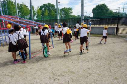 運動会も終わり、運動場で遊ぶ姿もやや減っているように思いましたが、今日は1時間目の休み時間から、さっそく多くの子ども達が集まり、元気よく遊んでいました。初めてでなかなか上手くのれない子も、せっせと練習に励んでいました。