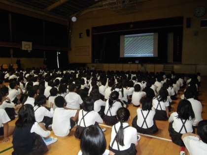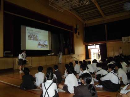 5年生の発表を他の学年の児童が熱心に聞く様子はとても印象的でした。