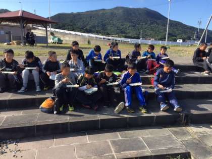 今日の朝食は菅島のお弁当屋さんのお弁当です。天候に恵まれ、とてもすがすがしいです。食べ終わった後は、船で鳥羽に戻り、鳥羽水族館に行きます!