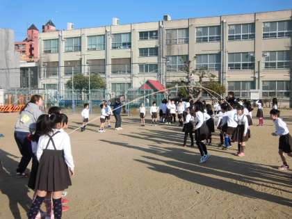 1月24日(金) 今日でなわとびの体力週間も終わりです。2週間の間寒い朝も元気に体力作りに取り組みました。今週は今年からの新たな試みとしてクラスで大縄跳びに取り組みました。そして今日は最終日で記録会を行いました。今日今までの最高記録を出したクラス、今日は今までのように記録が出せなかったクラスと様々でしたが、印象に残ったのは、子どもたちの笑顔と元気な声です。朝から体を動かすことの気持ちよさと、クラスが1つになってがんばった気持ちよさがとてもよく伝わってきました。