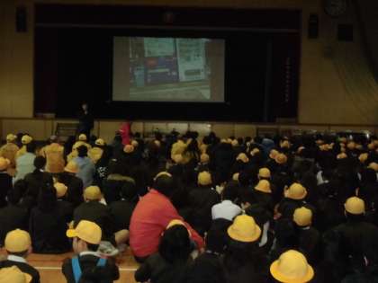 地域防災避難訓練は、保護者の方や地域の見守り隊の方と一緒に集団登校をし、講堂に集合しました。そのあと、区役所の防災担当の方などから阪神淡路大震災の時の町や避難所の様子の映像を見せていただいたり、学校にある防災備品の説明などをしていただいたりしました。子どもたちは大震災を知らないので、地震の後の町の様子に驚いていました。あらためて地震の怖さと地域で助け合うことの大切さを感じることができました。