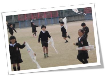 たこを持って走るだけになってしまいましたが 青空に 自分が描いた絵が 気持ちよく泳いでいるのを見て おおはしゃぎでした。