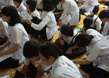 歯科衛生士学校の方が 子どもたちにマンツーマンでそばについてくださり、はぐきの観察の仕方や歯のみがきかた、デンタルフロスの使い方を アドバイスしてくださいました。