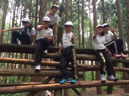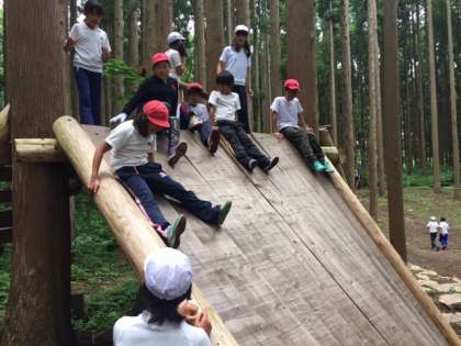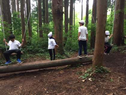 おやつの後はアサヒの森であそびました!アサヒの森には手作りのアスレチックなどがたくさん!