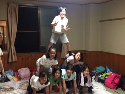大雨のためナイトハイクが中止になりました。お部屋での楽しげな様子を写しました。最後の夜を楽しんでいます。