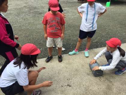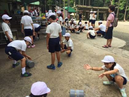 最後の活動シャーベット作りが始まりました。ジュースと砂糖を混ぜて缶に移し、氷と塩が入った専用の容器に缶ごと入れ、転がして冷やします。