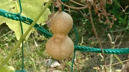 学校内のあちこちで、実りの秋を迎えています。柿やひょうたんが色づき、5年生が育ててきた稲も、収穫間近になっています。