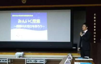 児童健康委員会が、4月から 調査してことをまとめたり、調べたりしたことを 劇にして発表しました。そのあと 堺市教育委員会指導主事 木田哲生先生より「睡眠の大切さを知ろう」というお話を していただきました。
