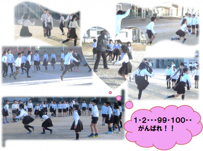 みんな大きな声で回数を数え はげましあって 楽しく跳んでいました。