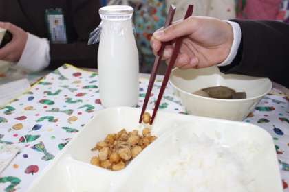 大豆を一粒づつ お箸ではさんで食べるのは 少し大変です。おうちでも お箸を上手にもって 早くつまめるよう練習してみるのも 楽しいかもしれませんね。