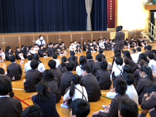 今日は朝の集会で1年生を迎える会をしました。みんな元気にあいさつができました。