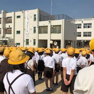 月曜日の児童朝会に、いくみんパトロール隊の方が来てくれました。防犯標語の「おこのみやき」についてもお話がありました。