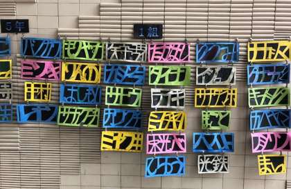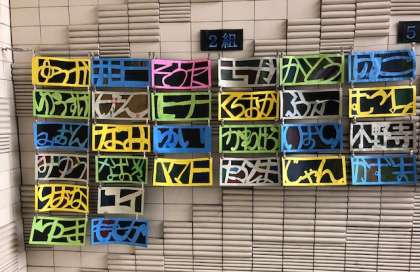 先日の参観日に取り組んだ図画工作の作品をピロティに展示しています。