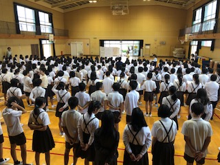 今日は1時間目に80周年記念式典の全体練習を行いました。児童演技の練習です。金子みすずさんの詩の群読と、嵐のふるさとという歌を合唱で歌いました。本番の歌声を楽しみにしていてください。