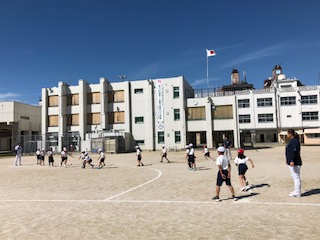 今日の2,3時間目に、オリックスブルーウェーブ少年野球教室からコーチの方々がゲストティーチャーとしてきてくれました。