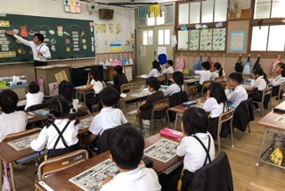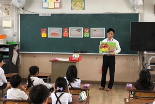 今日は中川小学校から栄養教諭の谷先生に来ていただいて、1年生の栄養指導がありました。食べ物の働きについての学習でしたが、1年生にもわかりやすく教えてくださいました。