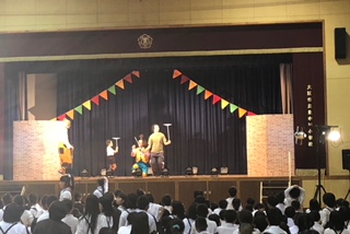 本日、パフォーマンスラボの皆さんに来ていただいて色々なパフォーマンスを演じていただきました。パントマイム、ディアボロ、皿回し、バランス芸などなど。