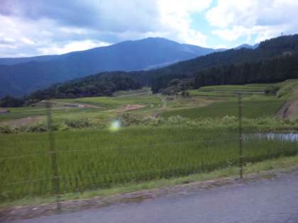 窓から見える 緑の山々が 後ろに後ろに 流れていきます